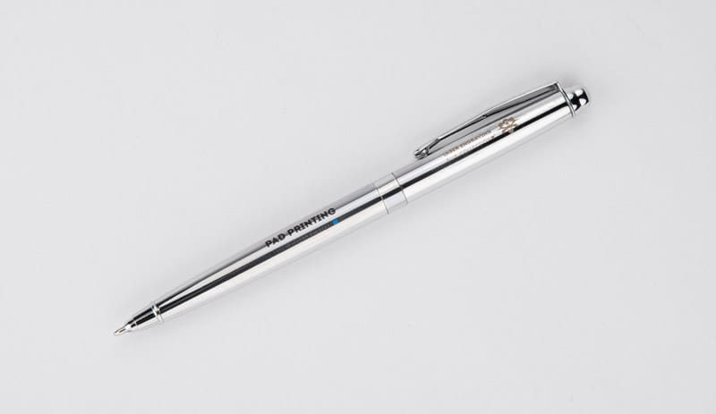 Bolígrafo FRISO plateado con impresión de logo