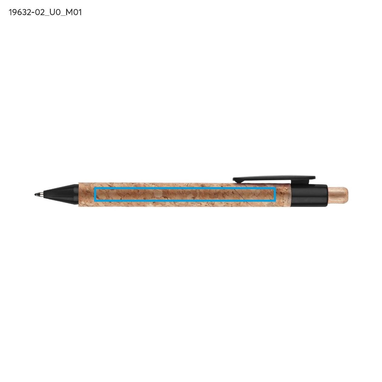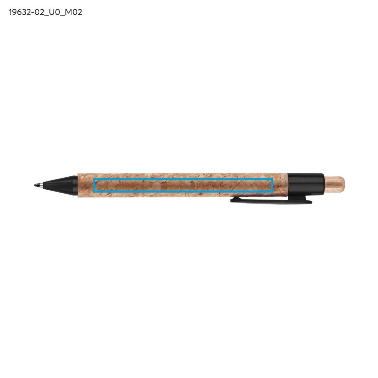 El bolígrafo KORTE es la combinación perfecta de estética y ecología, que sin duda atraerá la atención de quienes valoran el desarrollo sostenible. Su diseño único hace referencia a la idea del reciclaje, lo que lo convierte en una excelente opción para consumidores conscientes. El cuerpo del bolígrafo está hecho de corcho natural, un material conocido por sus propiedades ecológicas y durabilidad. Además, el botón del bolígrafo está fabricado en madera, lo que resalta su carácter natural y hace que cada ejemplar sea único.