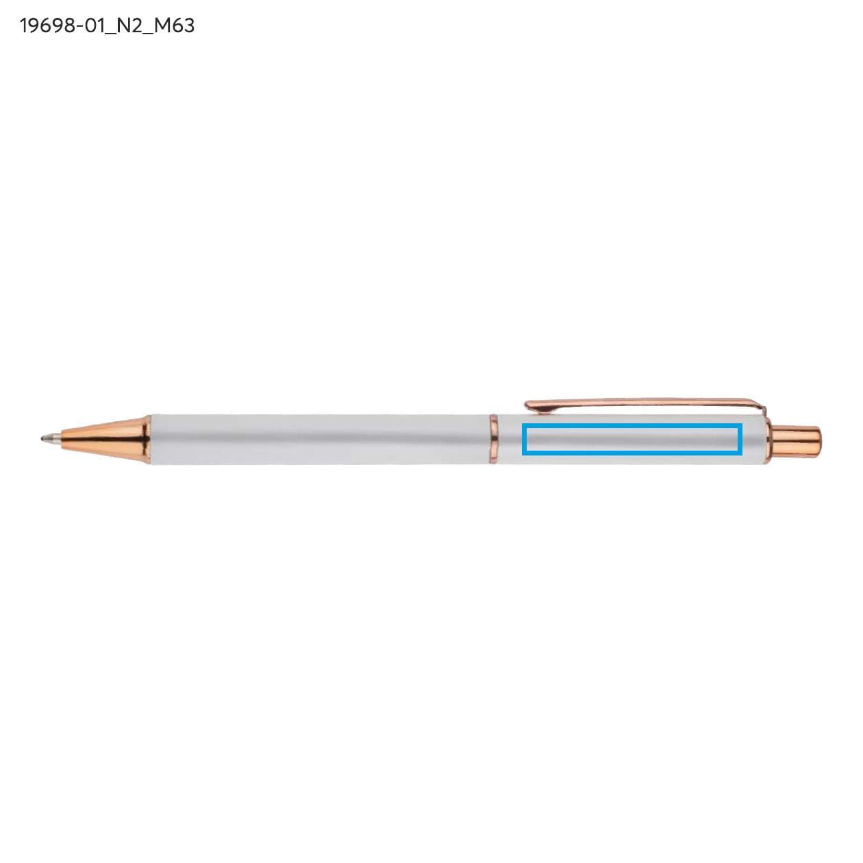 Descubre la elegancia con nuestro bolígrafo mate, que combina un diseño moderno con funcionalidad. Su cuerpo blanco de metal no solo le aporta ligereza, sino también una durabilidad excepcional, lo que lo convierte en una herramienta ideal para el uso diario. La aplicación de acentos en color oro rosa hace que el bolígrafo destaque entre otros artículos de oficina, añadiendo estilo y clase a cualquier escritorio o bolso. Es una elección perfecta para quienes valoran tanto la estética como la comodidad al escribir.