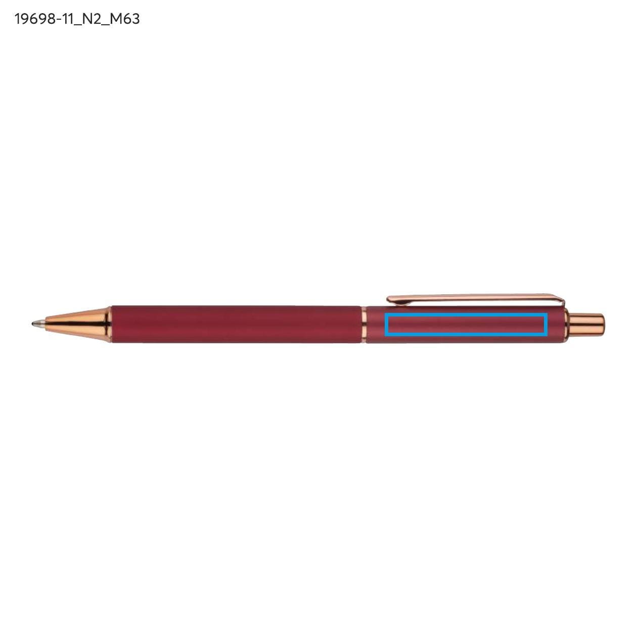 El bolígrafo mate con acentos en color oro rosa es la combinación perfecta de elegancia y funcionalidad. Su clásico color burdeos lo hace no solo práctico, sino también estiloso, convirtiéndolo en un accesorio ideal para cualquier oficina o bolso. Gracias a su construcción metálica, el bolígrafo es resistente y duradero, garantizando un uso prolongado. Los acentos en color oro rosa le dan un carácter lujoso, haciendo que sea una excelente elección tanto para el día a día como para ocasiones especiales.
