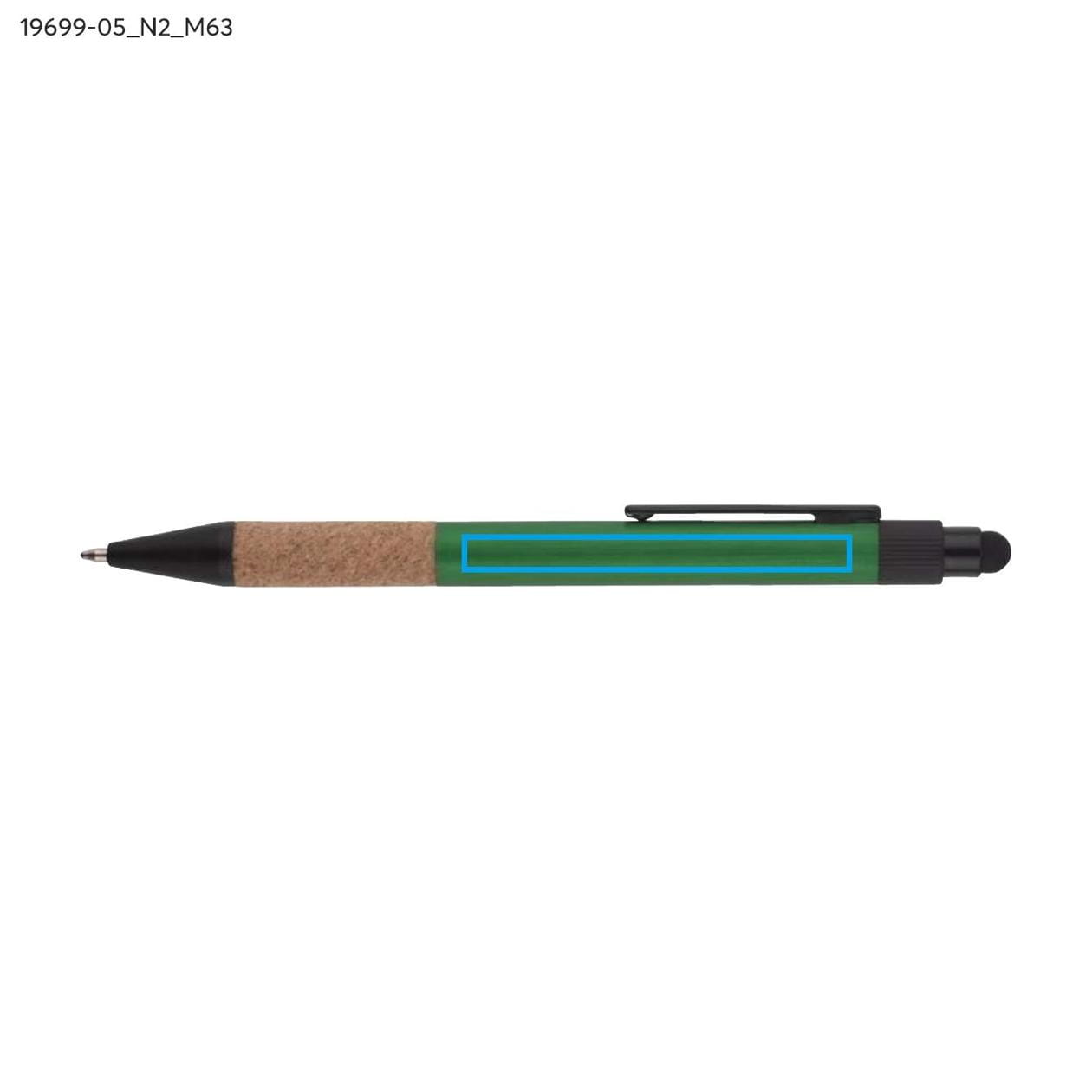 El bolígrafo BOSAY es la combinación perfecta de ecología y estilo, que sin duda atraerá la atención de cualquier usuario. Fabricado con aluminio reciclado, este bolígrafo no solo cumple con sus funciones, sino que también cuida el medio ambiente. Su color verde mate le da un aspecto moderno, y el corcho natural utilizado en el agarre le añade originalidad y un carácter único. Gracias a esto, el bolígrafo BOSAY no solo es ideal para el uso diario, sino que también se convierte en un elegante accesorio en el escritorio o en el bolso.