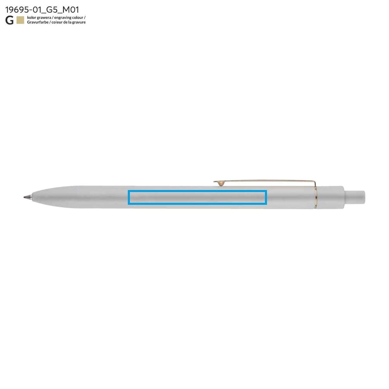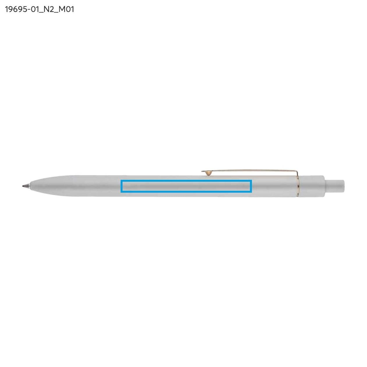 El bolígrafo de aluminio estilizado es la combinación perfecta de elegancia y funcionalidad. Su acabado mate lo hace no solo agradable al tacto, sino también ideal para cualquier entorno. Gracias al clip dorado, el bolígrafo adquiere un carácter único que atrae la atención y le añade prestigio. Es una elección excelente para quienes valoran el estilo y la calidad en el uso diario.