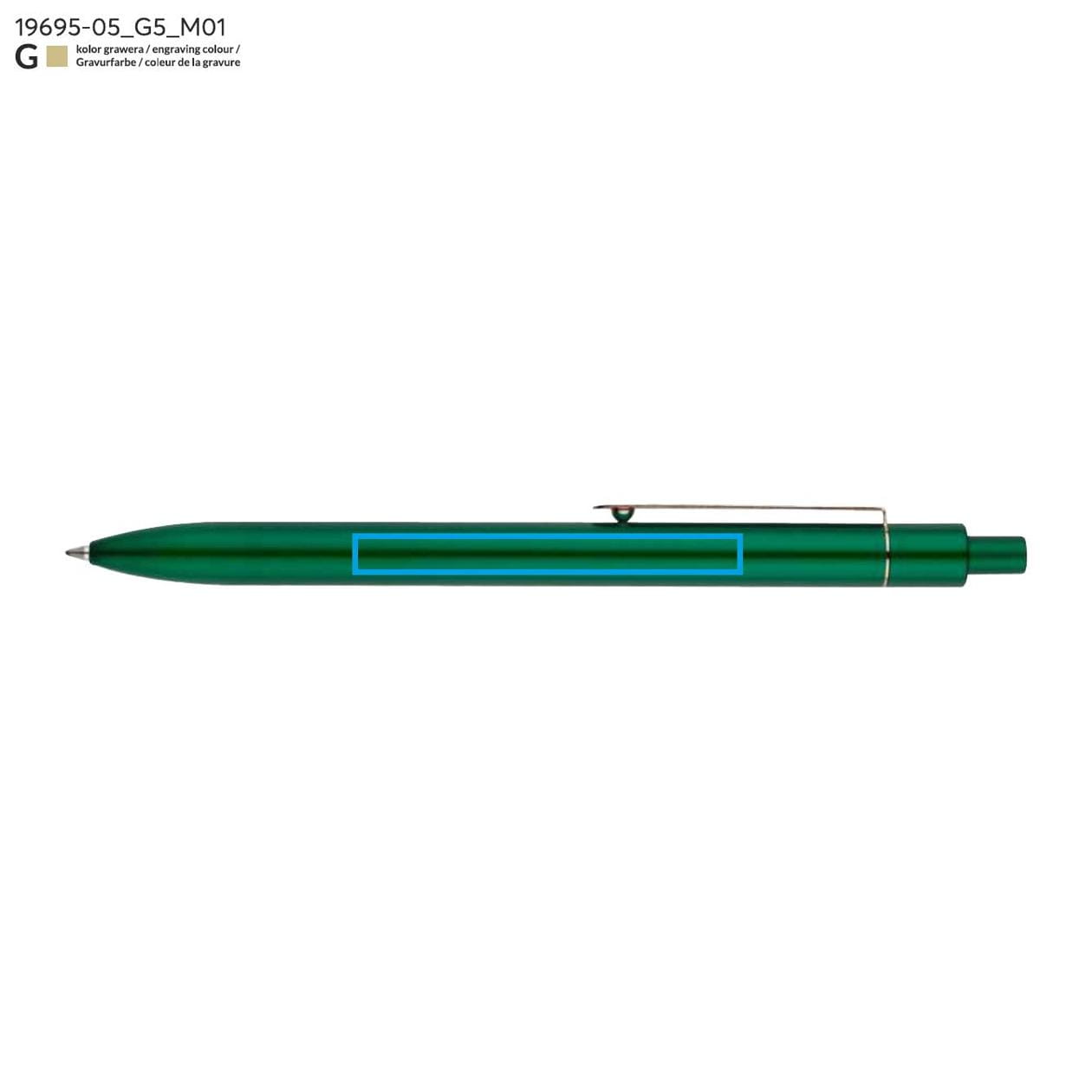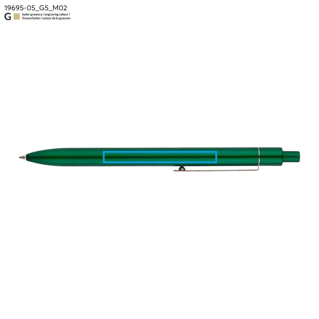 El color verde en el que está disponible este bolígrafo atrae la atención y destaca entre tonos tradicionales y más sobrios. Es una solución excelente para quienes desean marcar su individualidad y sobresalir entre la multitud. El bolígrafo está hecho de metal de alta calidad, lo que garantiza su durabilidad y resistencia a daños. Gracias a sus dimensiones compactas, el bolígrafo cabe en cualquier bolsillo o bolso, lo que lo convierte en un compañero ideal para viajes.
