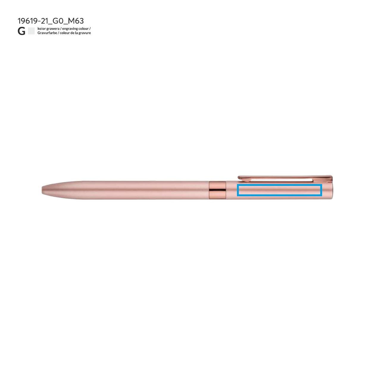 El bolígrafo GELLE es una combinación de elegancia y funcionalidad que hará que cada proceso de escritura sea un placer. Su diseño moderno, disponible en un sofisticado color rosa, atrae la mirada y añade clase a cualquier accesorio de oficina. El bolígrafo está fabricado con metal de alta calidad, lo que garantiza no solo una apariencia estética, sino también durabilidad y resistencia a daños. Los acabados cromados o dorados resaltan su carácter lujoso, convirtiéndolo en una elección ideal como regalo para un ser querido o como un elegante gadget para la oficina.