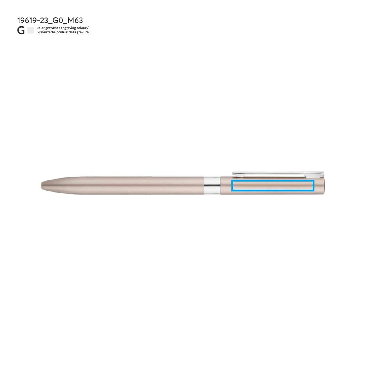 El bolígrafo GELLE es una combinación de elegancia y funcionalidad que sin duda cumplirá con las expectativas incluso de los usuarios más exigentes. Su forma de diseño y acabado cuidadoso lo convierten en un complemento ideal para la oficina, la escuela o reuniones de negocios. Fabricado con metal de alta calidad, el bolígrafo se caracteriza tanto por su estética como por su durabilidad, lo que lo convierte en una excelente opción para regalo o como un gadget personal que destaca frente a los bolígrafos tradicionales. Gracias a sus acabados cromados o dorados, el bolígrafo deslumbra con su apariencia y al mismo tiempo ofrece comodidad en su uso.
