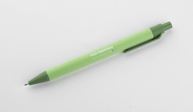 Bolígrafo de papel POLI verde con impresión de logo