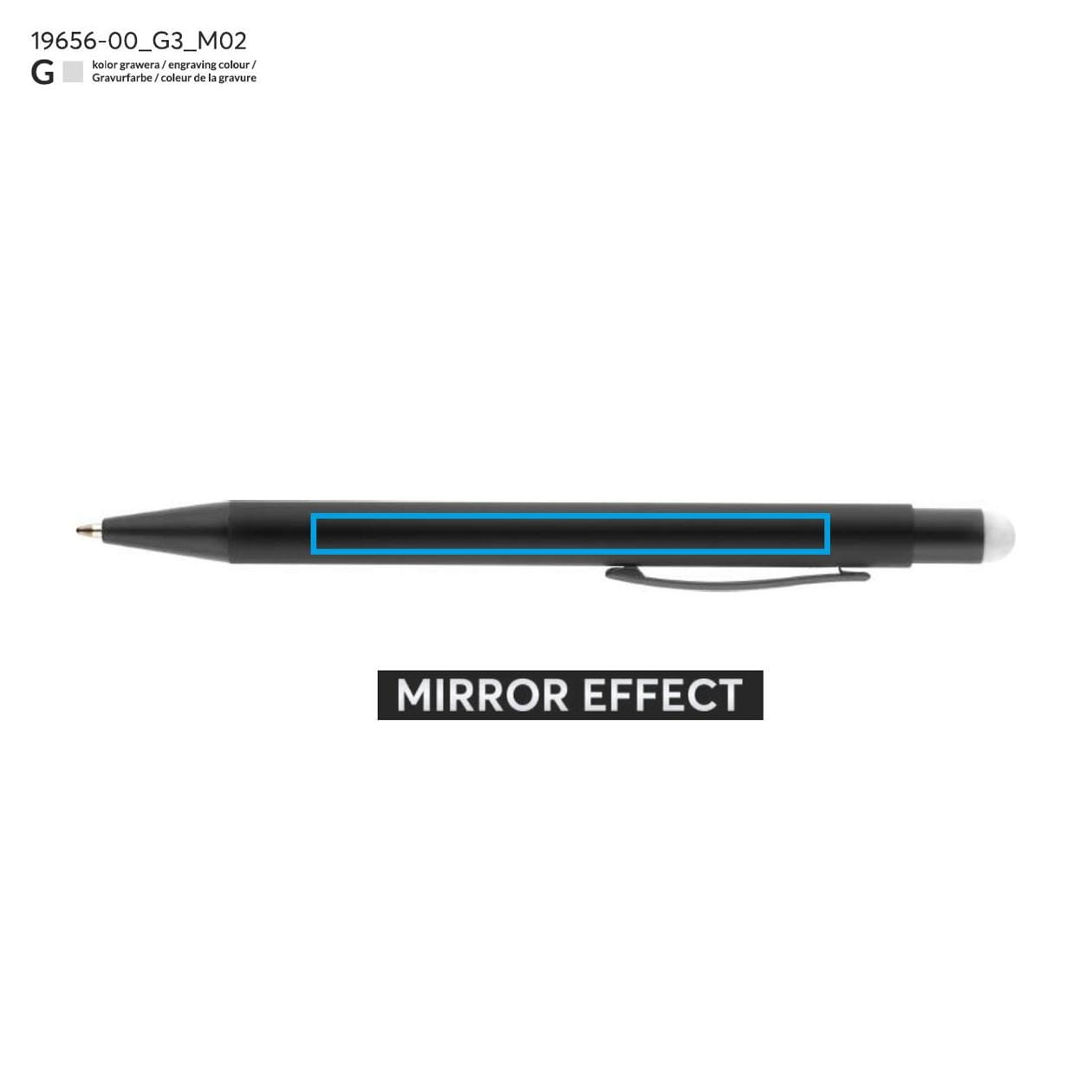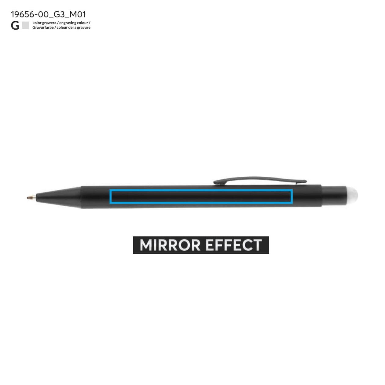 NIRO es un bolígrafo que destaca no solo por su estética, sino también por su funcionalidad. Su efecto único de marcado hace que cada texto escrito adquiera un carácter personal. El color del grabado, cercano al color de la punta táctil, hace que el bolígrafo sea la herramienta ideal para manejar pantallas táctiles, lo que lo convierte en un accesorio versátil en la era digital. Gracias al uso de materiales modernos, NIRO combina elegancia y modernidad, siendo una elección perfecta tanto para profesionales como para personas que buscan herramientas de escritura excepcionales.