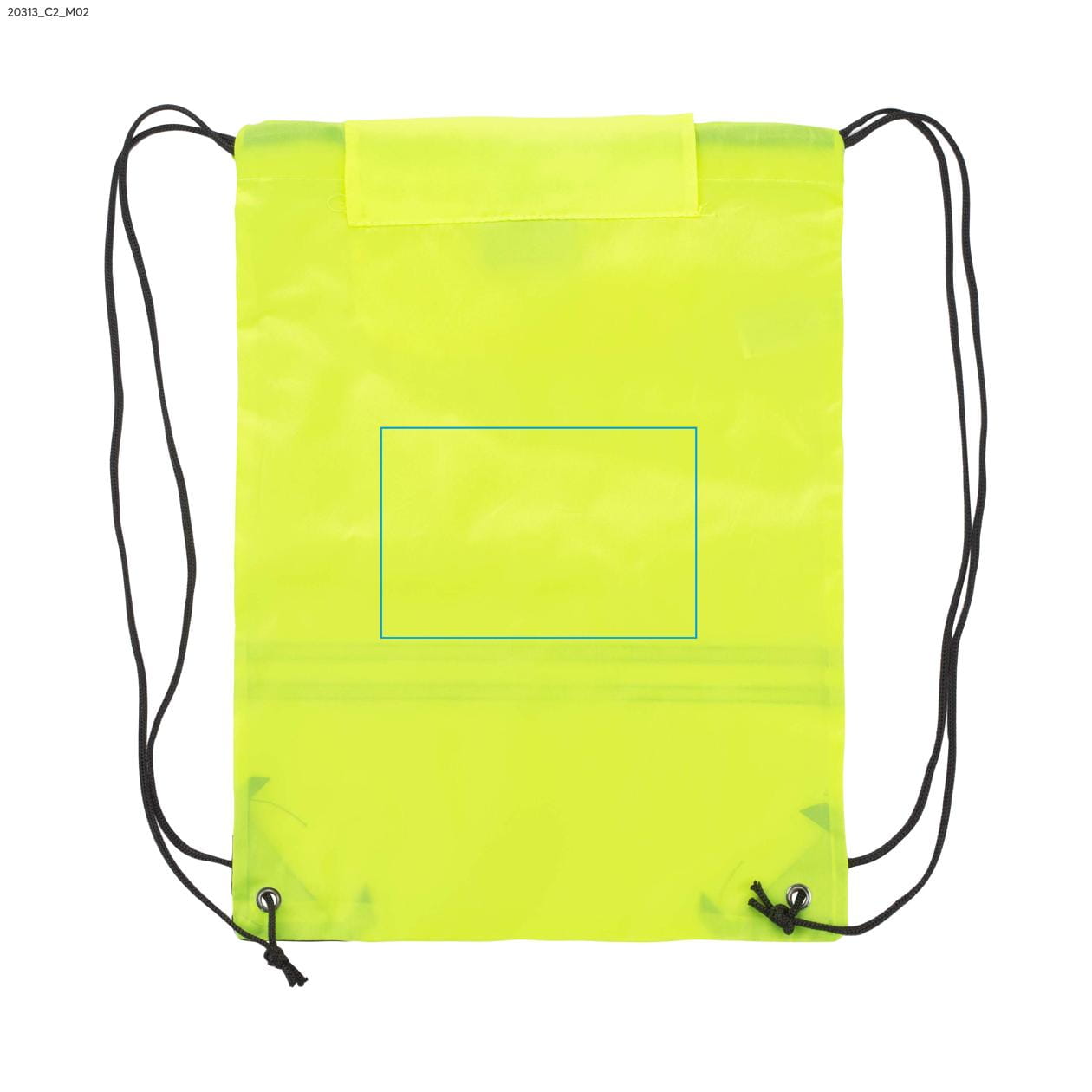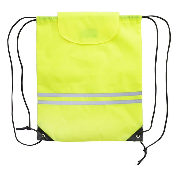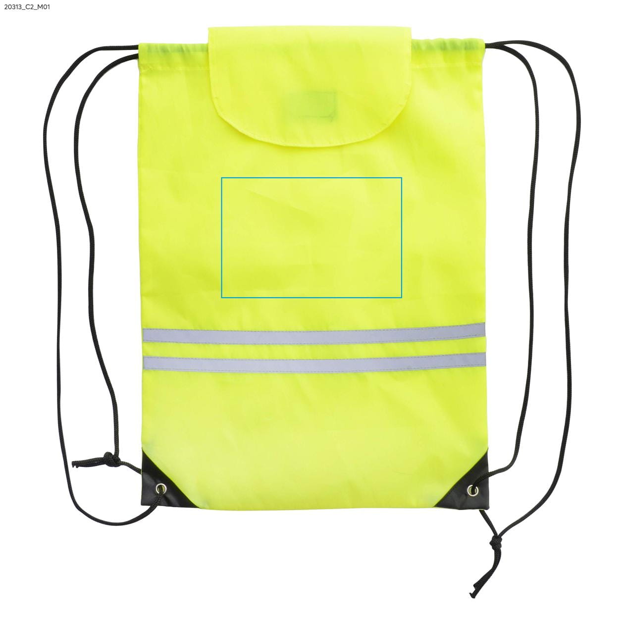 Bolsa reflectante hecha de poliéster. Cuenta con cordones y un cierre de velcro que permite cerrar la bolsa rápidamente.