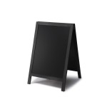 El caballete está hecho de madera lacada de alta calidad, también está equipado con un limitador para la apertura de las patas. La superficie negra está adaptada para escribir con rotuladores de tiza, es fácil de usar y limpiar, y colocar información en ella es muy sencillo - solo hay que escribir o dibujar la oferta con rotuladores de tiza.