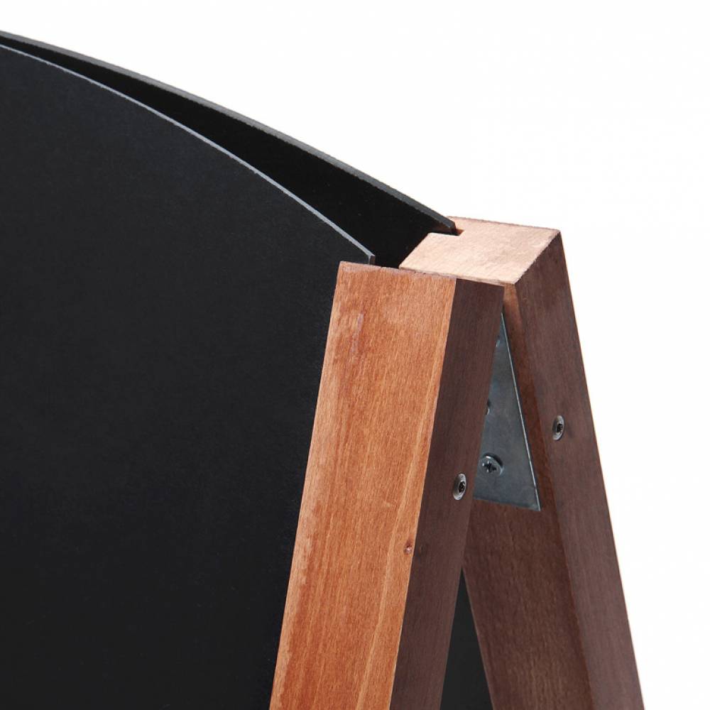 Presentamos un robusto caballete publicitario de madera con superficie para escribir con tiza blanda o marcadores de tiza. El sistema cuenta con paneles extraíbles que se pueden girar y volver a insertar. Esto permite utilizar hasta 4 superficies para escribir simultáneamente.