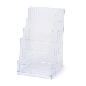 Expositor para folletos SCRITTO® 4 x A5 expositor fundido bolsillo para folletos desplegables para colocar sobre mesa mostrador con posibilidad de colgar en pared