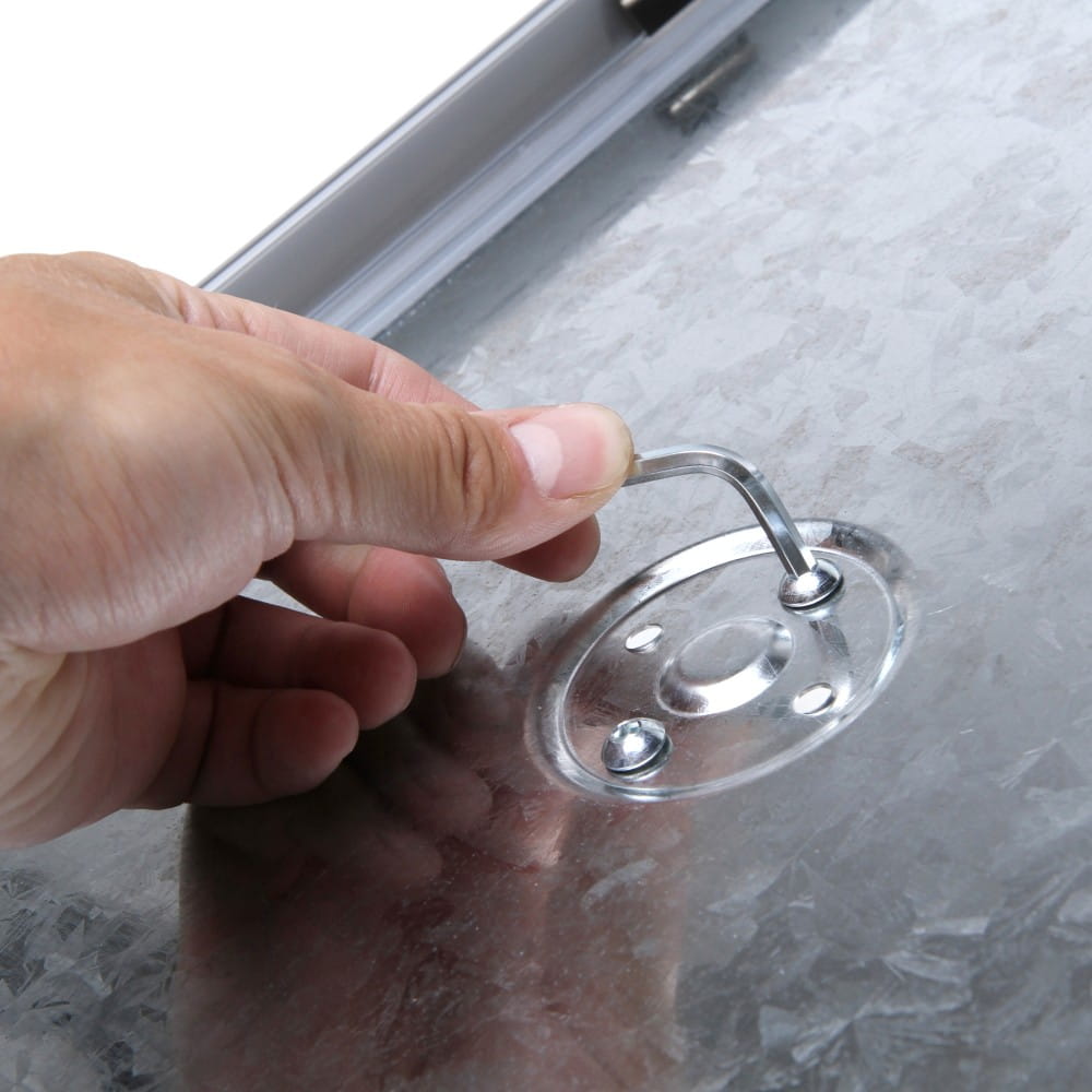 Nuestro expositor para menú está hecho de aluminio, lo que le confiere ligereza y durabilidad, y está montado sobre una base muy estable, equipada con pies de goma que evitan el deslizamiento del expositor y protegen así el suelo de arañazos. El expositor para menú ha sido fabricado con la máxima precisión, algo que se nota inmediatamente al abrir el paquete; es un producto realmente sólido que durará muchos años.