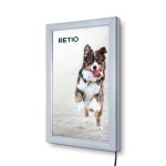 Marco delgado para póster iluminado equipado con un panel LED integrado que garantiza una iluminación uniforme del póster, haciendo que el póster sea bien visible por la noche o en los meses de invierno, o en condiciones de poca luz.