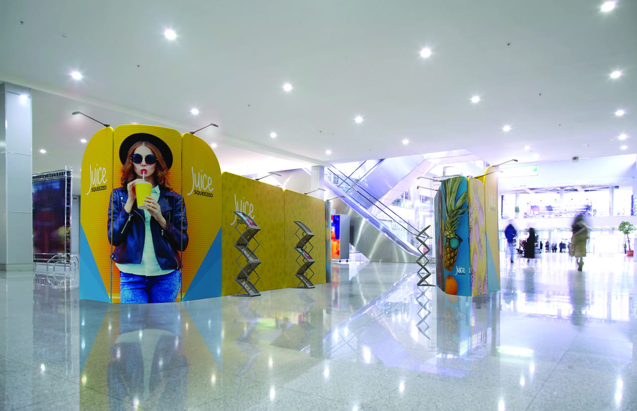 La impresión se realiza mediante sublimación en un material de alta calidad Display Stretch 180 g, que se caracteriza por una excelente saturación de colores. En este caso, son dos capas de material unidas por una cremallera, gracias a la cual al tensar el gráfico en el marco podemos ajustarlo perfectamente. La cremallera está oculta bajo una cubierta, por lo que no afecta la estética del stand.