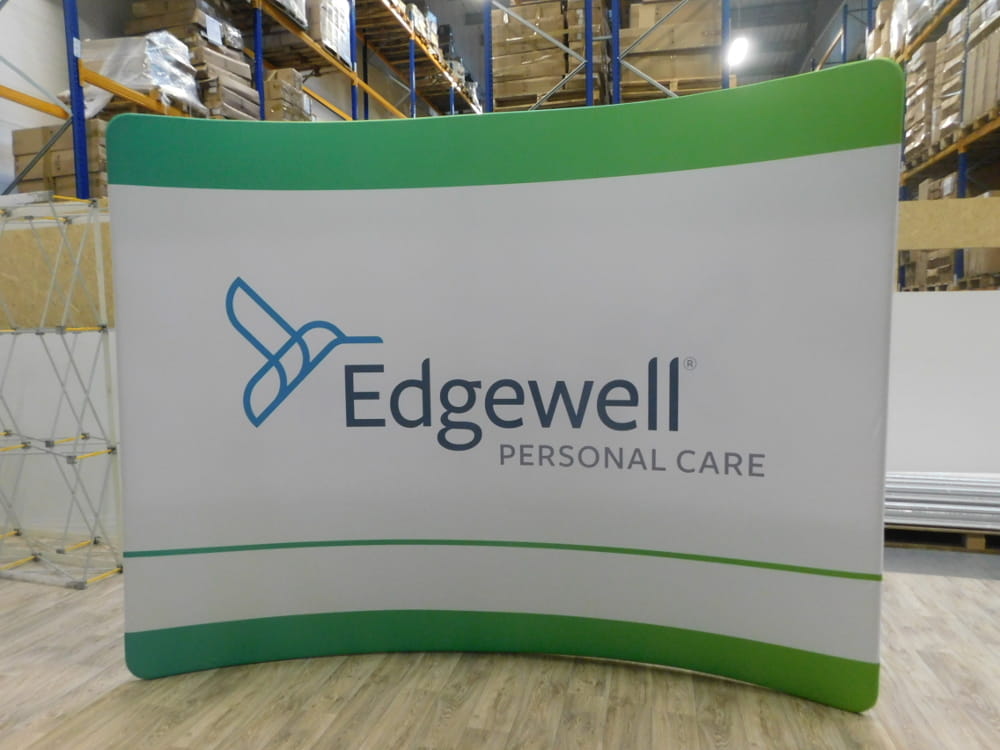 Muro publicitario textil curvado horizontal 2,4 x 2,4 m con impresión a doble cara