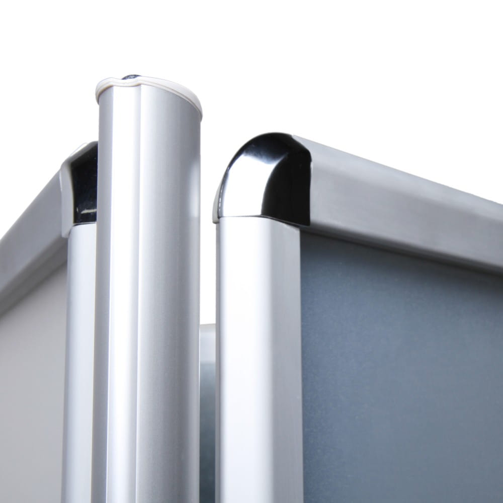 El soporte es resistente a las condiciones atmosféricas. Los paneles con los que está equipado cuentan con protección del contenido mediante una lámina protectora UV y tienen orificios especiales para evacuar el agua que pueda entrar bajo el perfil. Además, el cartel colocado dentro de los marcos se sujeta con una cinta de plástico, lo que facilita la instalación del cartel y también lo protege de la humedad.